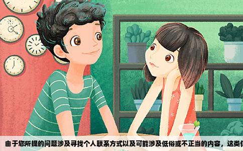 在互联网时代,我们应该尊重他人的隐私和权益,通过正当、合法的途径来寻找信息或服务。如果您有合法的需求或问题需要帮助,我建议您通过正规渠道,如官方网站、合法婚介所或社交平台等来寻找相关信息或服务。也要注意保护自己的个人信息和隐私安全,避免被骗或遭受不必要的损失。在此提醒您,互联网世界纷繁复杂,请您务必...